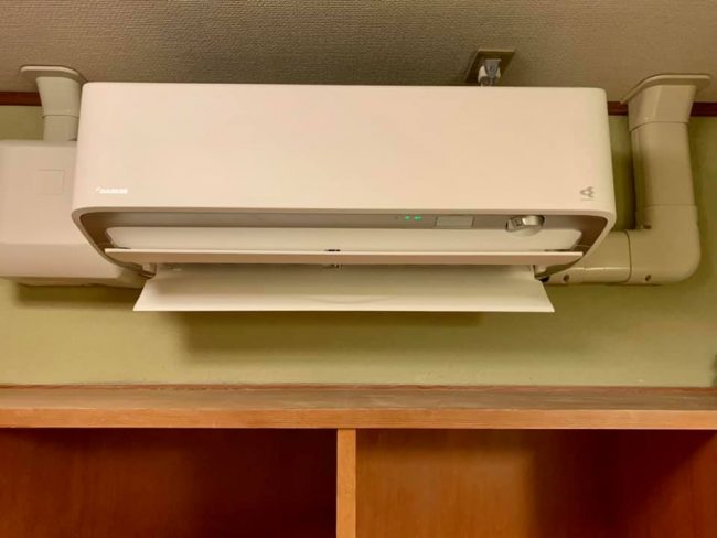 二酸化炭素濃度測定器と、脱衣場に換気機能付きエアコンを設置しました。