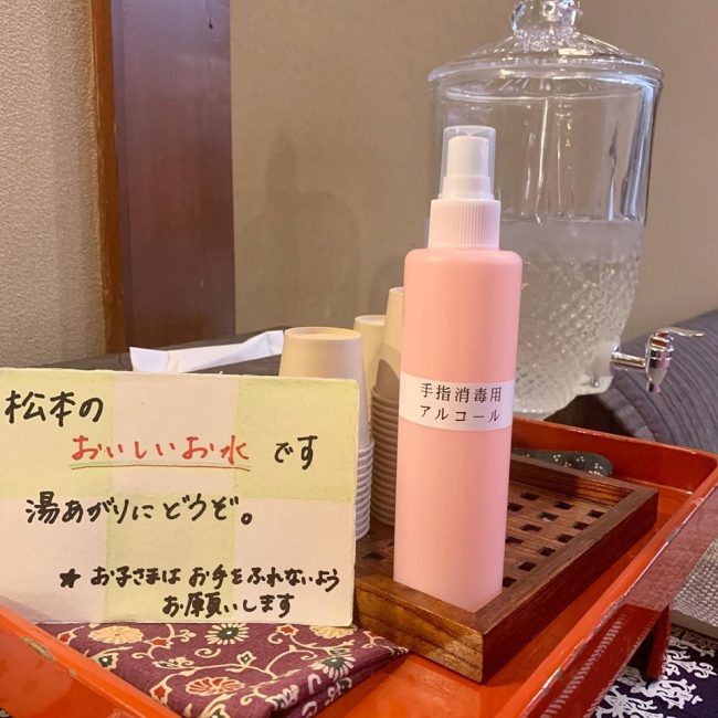 新型コロナウィルス対策 2020.02.25 全客室、パブリックスペースに 消毒用アルコールや除菌グッズを置いています。 新型コロナウィルスの感染が拡大しています。 感染された方々の早期回復と、 事態の終息を心よりお祈り申し上げます。 この1週間が拡大を止める正念場とのこと。。 宿泊キャンセルや先の予約が入って来ないなど辛い時ですが、 観光地や同業の皆様、心をひとつに頑張りましょう。 事態が終息し、これからの観光シーズンがお客さまで賑わいますように。 < 前の記事へ 記事一覧へ 次の記事へ > 最近の投稿 節分の設えに 長野県民宿泊応援プラン発売中です 公式サイトをリニューアルいたしました。 夜桜見物バス運行します ゴジラシューズご覧いただけます! カテゴリ別投稿 新着情報 富士乃湯のこと 温泉 日記 月別アーカイブ 月を選択 2026年1月 (3) 2024年4月 (1) 2024年3月 (3) 2024年2月 (2) 2024年1月 (3) 2023年12月 (4) 2023年8月 (1) 2023年7月 (2) 2023年6月 (1) 2023年5月 (1) 2023年4月 (1) 2023年3月 (1) 2023年2月 (1) 2023年1月 (1) 2022年12月 (2) 2022年10月 (4) 2022年9月 (1) 2022年7月 (3) 2022年6月 (1) 2022年5月 (1) 2022年4月 (6) 2022年3月 (5) 2022年2月 (5) 2022年1月 (4) 2021年12月 (2) 2021年11月 (2) 2021年10月 (3) 2021年9月 (5) 2021年8月 (3) 2021年7月 (4) 2021年6月 (4) 2021年5月 (6) 2021年4月 (11) 2021年3月 (1) 2021年2月 (3) 2021年1月 (6) 2020年12月 (3) 2020年9月 (2) 2020年8月 (2) 2020年7月 (3) 2020年6月 (7) 2020年5月 (5) 2020年4月 (7) 2020年3月 (3) 2020年2月 (6) 2020年1月 (3)